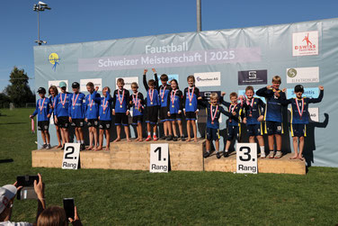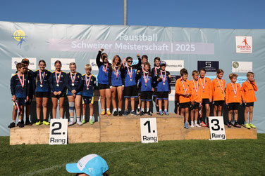 Bei der Rangverkündigung durfte jedes Team seinen verdienten Preis auf dem Podest entgegennehmen. Diese wurden den stolzen Kids von der Nationalspielerin Sara Peterhans und dem Nationalspieler Ueli Rebsamen überreicht. Zum Schluss freuten sich die Kinder über Autogramme der beiden Faustballcracks.